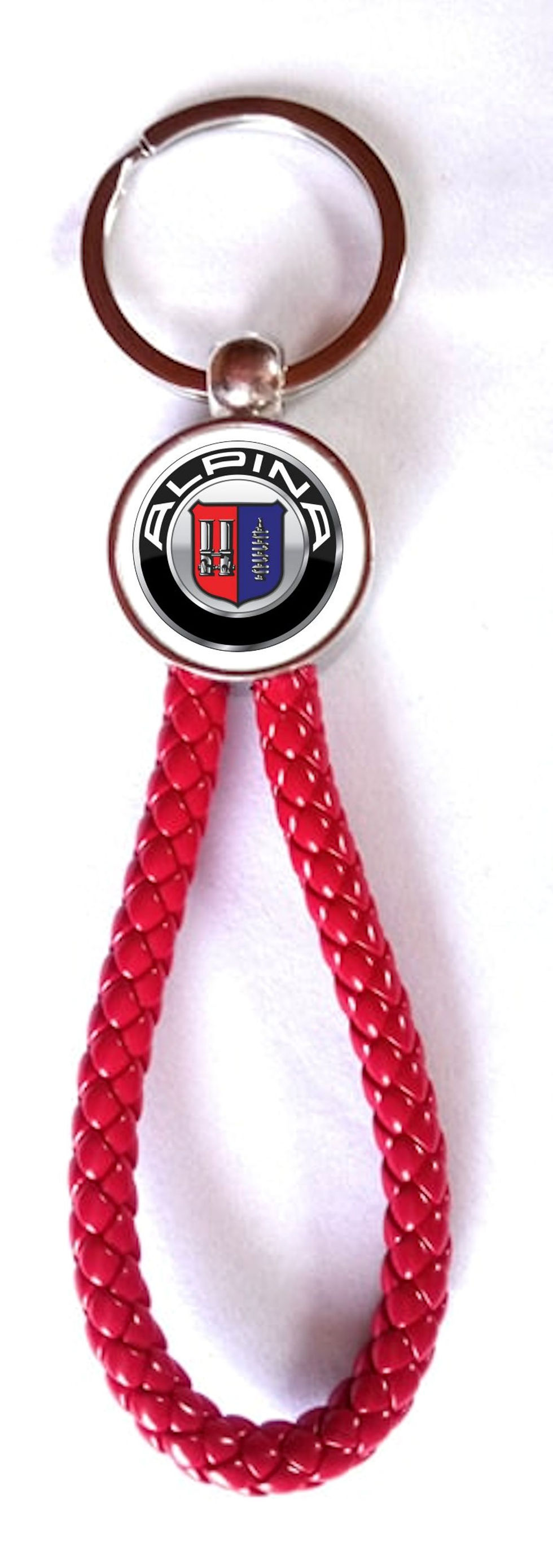 The RED D YNAMIC model is a premium quality braided imitation leather keyring enhanced with a chrome-plated stainless steel ring with perfect finishes.